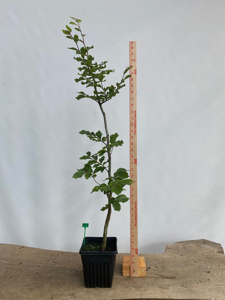 European beech (Fagus sylvatica) has many of the same great qualities as the Japanese beech. They grow quickly and will reduce their leaf size over time.