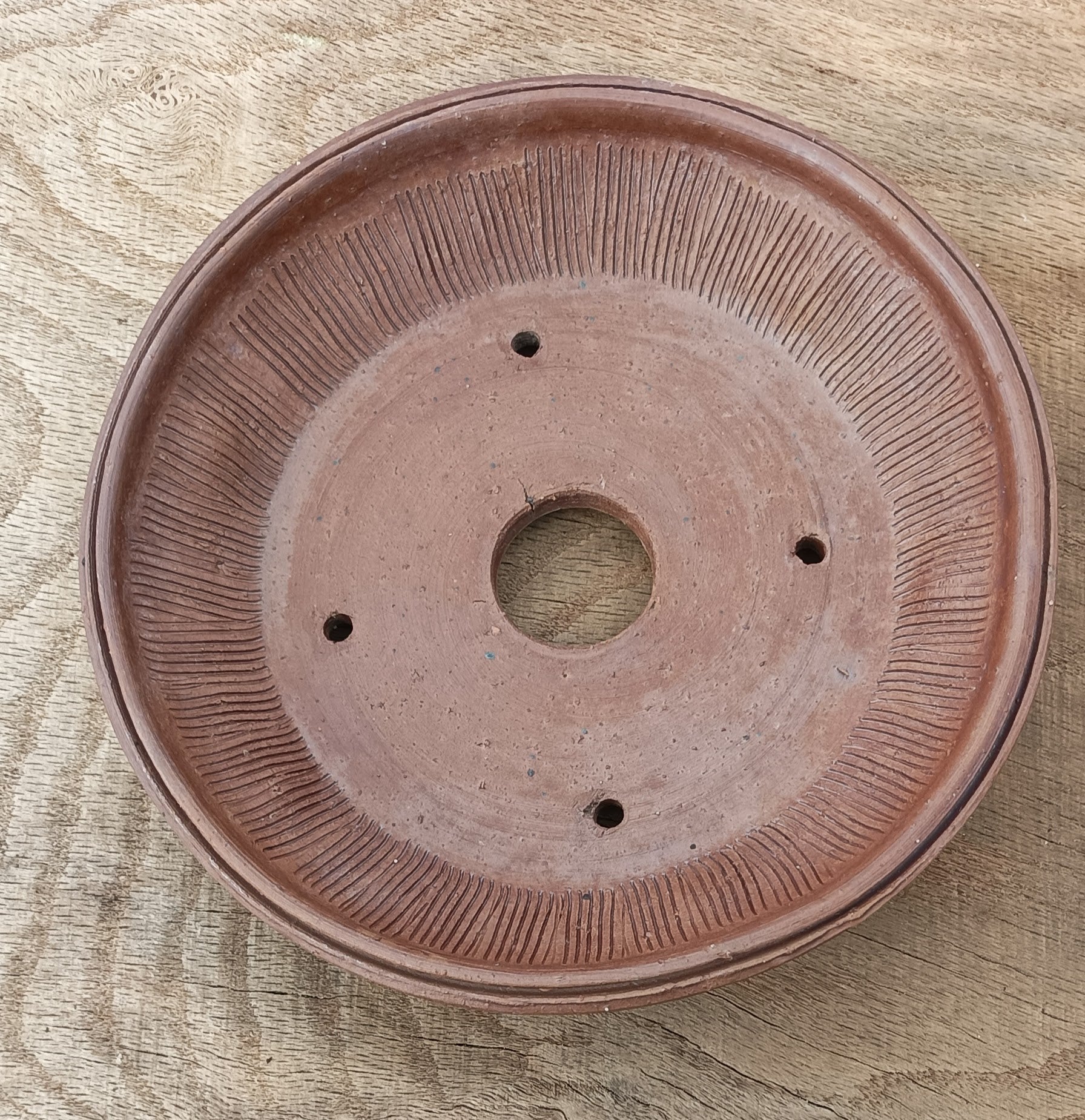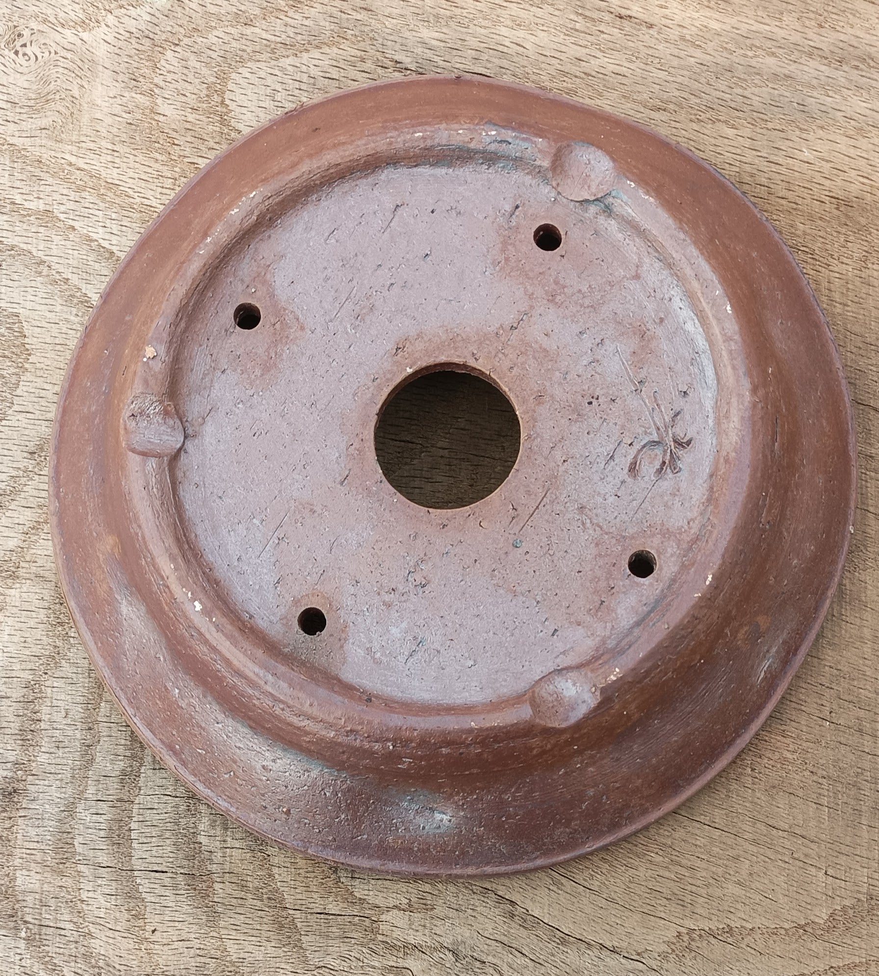 Shallow, round pot with ash glaze and finger marks by Mr. Mitunobu Ito #54