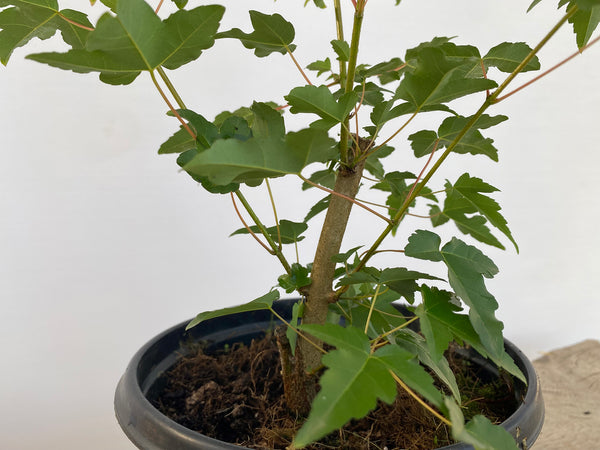 This tree seedling has been grown through a washer in order to help set up a great root system and establish a nebari.
